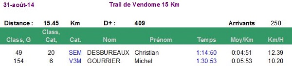 Christian Desbureaux & Michel Gourrier ont couru un trail de 15.45 km (D+ 409 m) à coté de Vendôme.